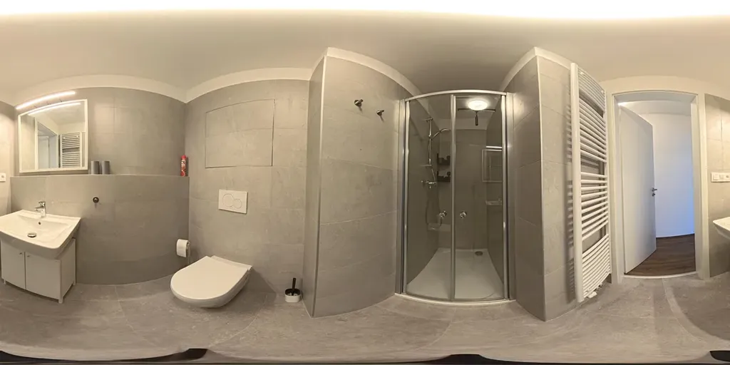 V předsíni je připravený prostor pro pračku a sušičku. Koupelna je vybavena sprchovým koutem a toaletou.