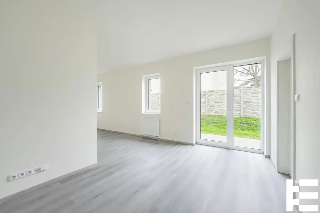 Bytová jednotka 2+kk o podlahové ploše 60,24 m² (dle vyhl. 366/2013 Sb.) se zahradou (122,94 m²) , která se nachází ve 1. NP a je členěná na vstupní chodbu (8,56 m²), obývací pokoj + kk (23,07 m²), ložnici (12,57 m²) koupelnu (5,78 m²) a sklep.