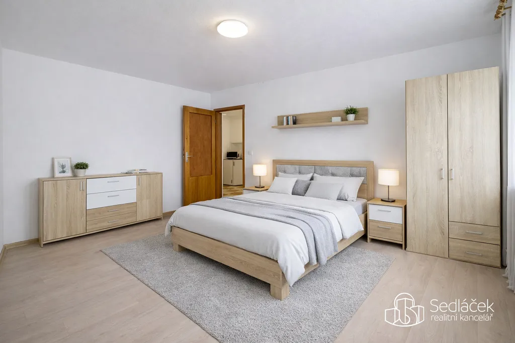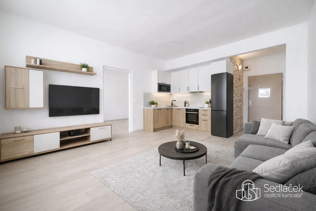 Dispozice bytu je praktická a funkční. Kuchyně je propojena s obývacím prostorem, k dispozici je samostatná ložnice a koupelna s vanou a toaletou. Plastová okna zajišťují tepelnou i zvukovou izolaci. K bytu náleží dvě sklepní kóje, které poskytují dostatek úložného prostoru.