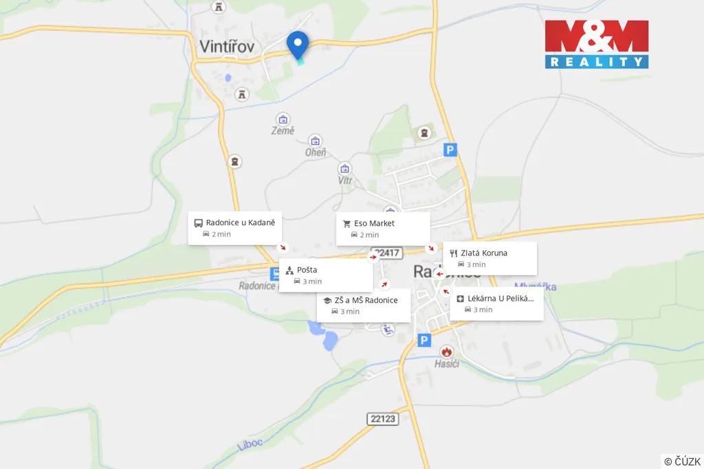 Nabízíme k prodeji rovinatý stavební pozemek o výměře 1044 m² v katastrálním území Vintířov u Radonic, situovaný na okraji klidné obce. Pozemek je ideální pro výstavbu rodinného domu či rekreačního objektu. Na pozemku se nachází vybavený karavan, který může být využíván během stavby nebo jako dočasné ubytování. Stav nemovitosti je dobrý, bez jakýchkoliv právních vad či omezení. Voda a elektřina jsou dostupné v blízkosti pozemku. Skvělá příležitost pro ty, kteří hledají klidné bydlení v přírodě, a přitom s dobrým dosahem základních služeb. Pro více informací a sjednání prohlídky nás neváhejte kontaktovat. Financování Vám zajistíme vlastním hypocentrem.