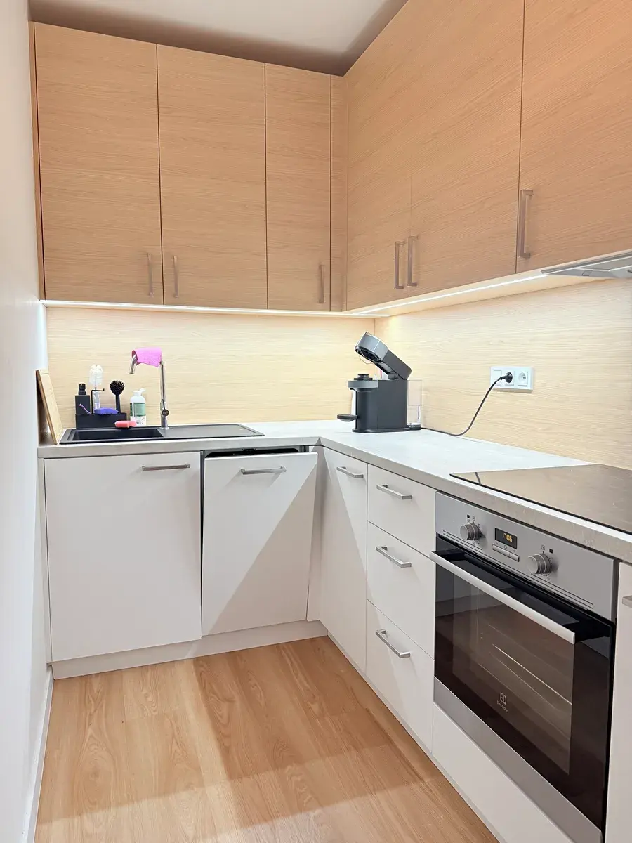• Kuchyň s vestavnými spotřebiči (myčka, lednice, indukční varná deska s troubou)
