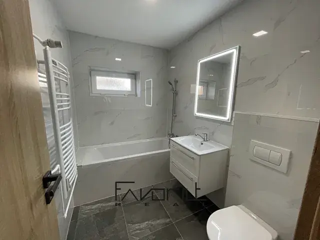 Na podlahách jsou zátěžové plovoucí podlahy. Nové interiérové a vstupní dveře včetně obložek, vypínače a zásuvky. Nové kvalitní omítky.