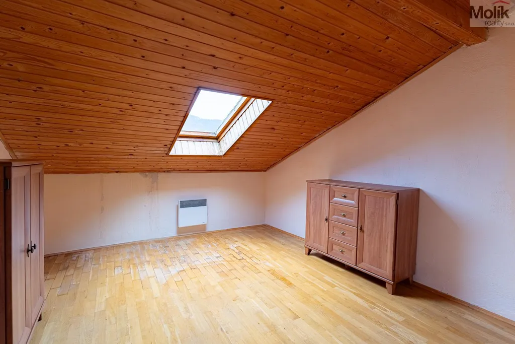 V horním patře se nachází dvě místnosti a chodba.