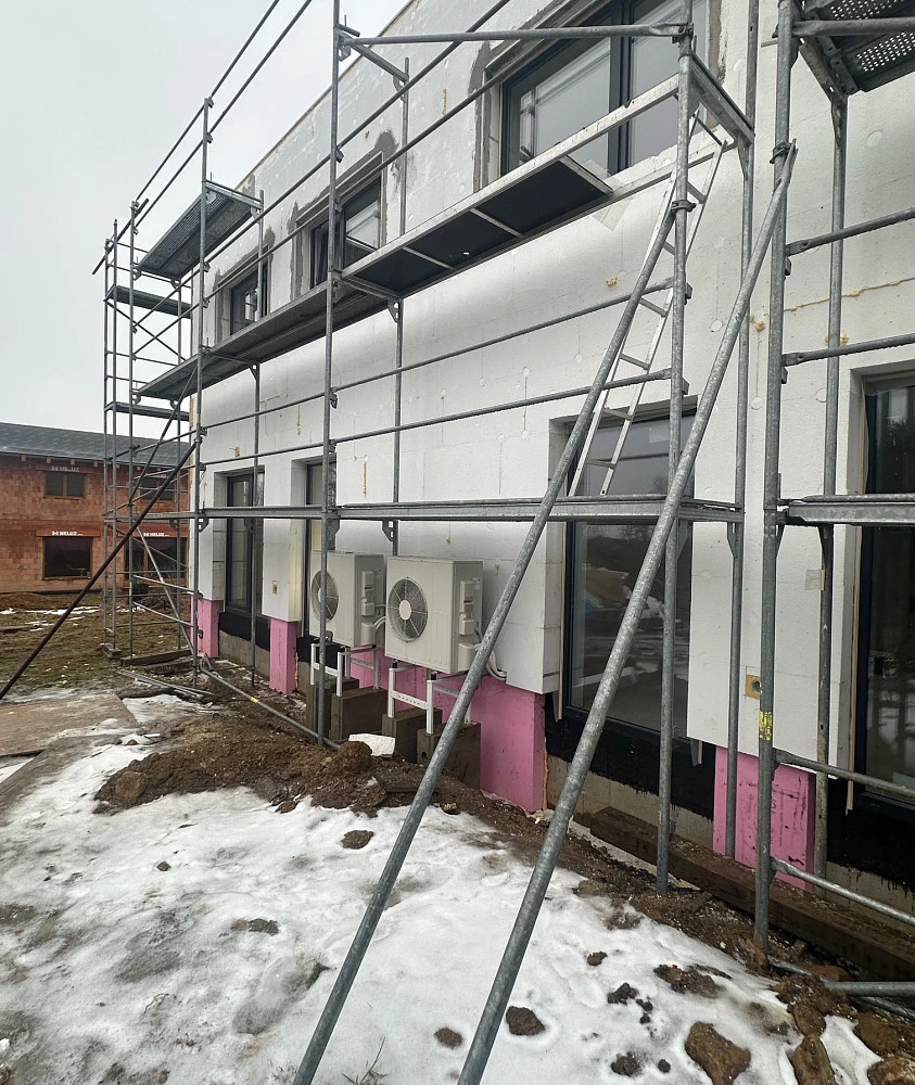 Dvojdům je dokonale izolován proti hluku - dvojitá středová stěna se speciální izolací. Každá část dvojdomku bude vytápěna zvlášť tepelným čerpadlem vzduch-voda – 13 kW s možností doplňkového zdroje pro vytápění – krbová kamna. Zdrojem pro teplou užitkovou vodu bude pro každou část dvojdomku tepelné čerpadlo, boiler kombinovaný s elektrickou patronou. Dům bude napojen na stávající vodovodní řad, ČOV a napojení na splaškovou kanalizací.