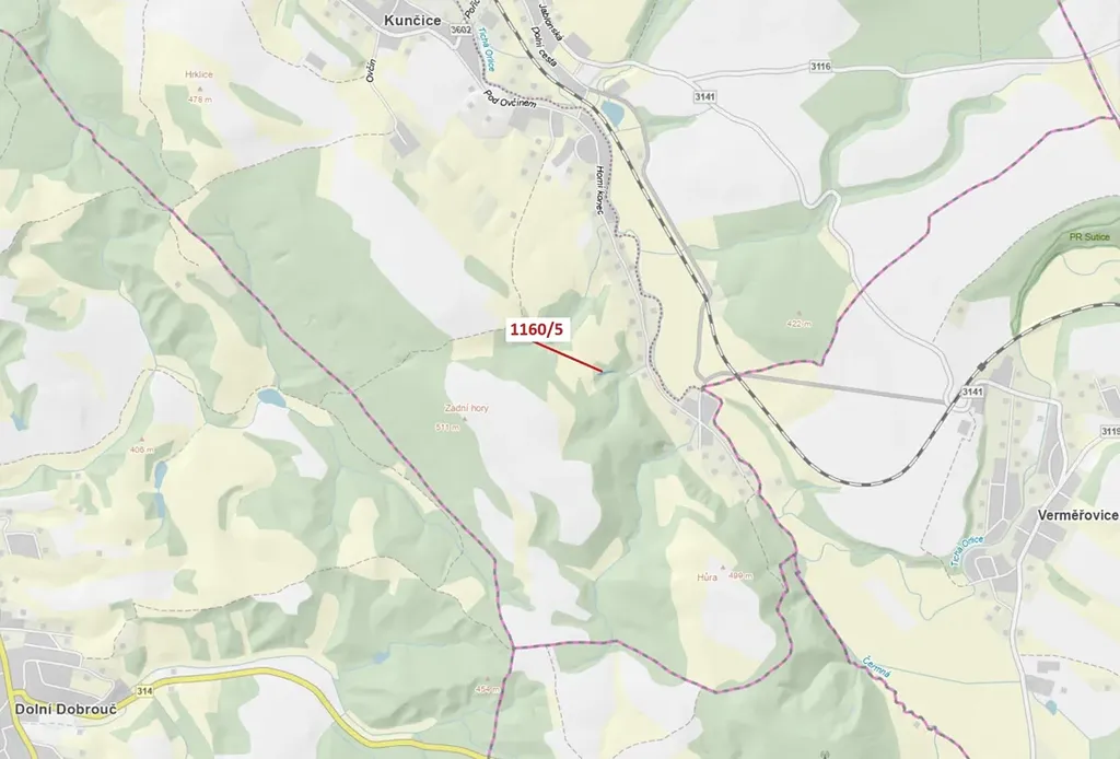 Lesní pozemek o výměře 282 m2, parcelní číslo 1160/5, podíl 1/1, katastrální území Kunčice u Letohradu, obec Letohrad, obec s rozšířenou působností Žamberk, okres Ústí nad Orlicí, Pardubický kraj.