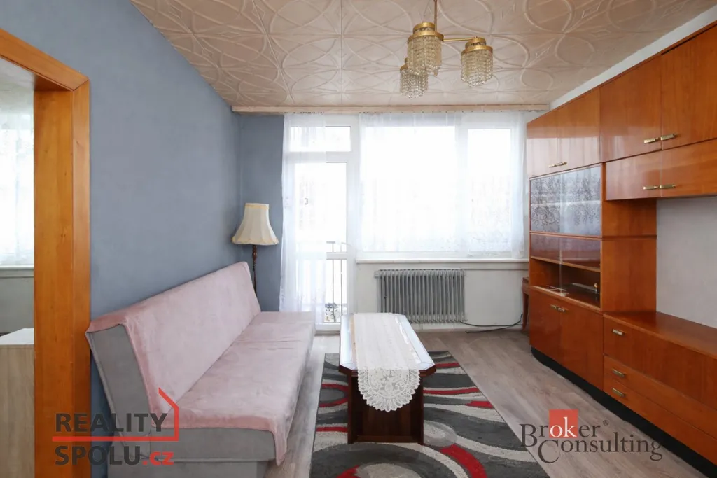 Dispozice bytu je praktická a přehledná – samostatná kuchyně, dva obytné pokoje, předsíň se šatnou, koupelna a oddělené WC. Celková výměra poskytuje dostatek prostoru jak pro jednotlivce, tak pro menší rodinu.