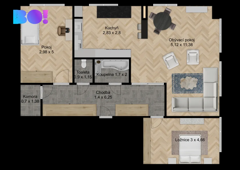 Byt je ideální volbou pro klienty, kteří hledají větší prostor v centru města a zároveň chtějí mít možnost přizpůsobit si bydlení vlastním potřebám.