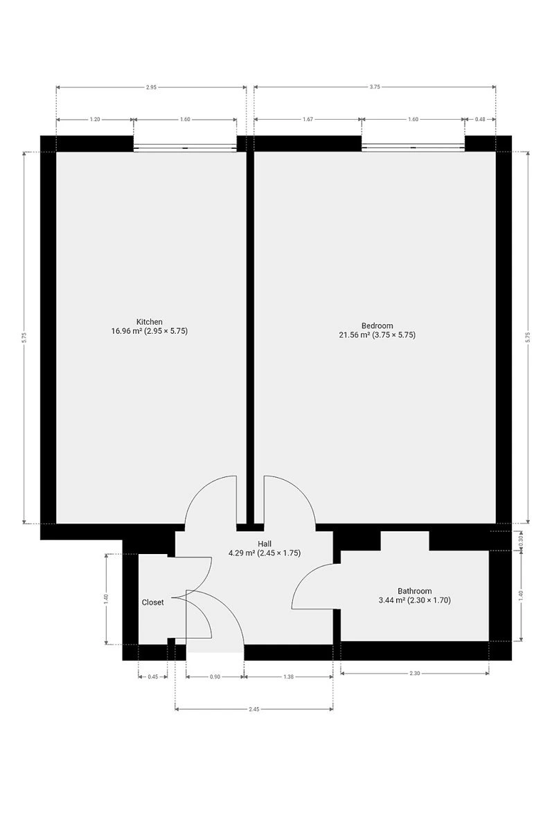 Byt se nabízí nevybavený. Kuchyně disponuje myčkou, elektrickou troubou, varnou deskou a digestoří. Obývací část je nezařízená, stejně jako ložnice. V koupelně je sprchový kout, umyvadlo a závěsné WC. V předsíni je úložný prostor s přípojkou na pračku.