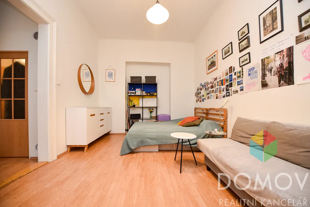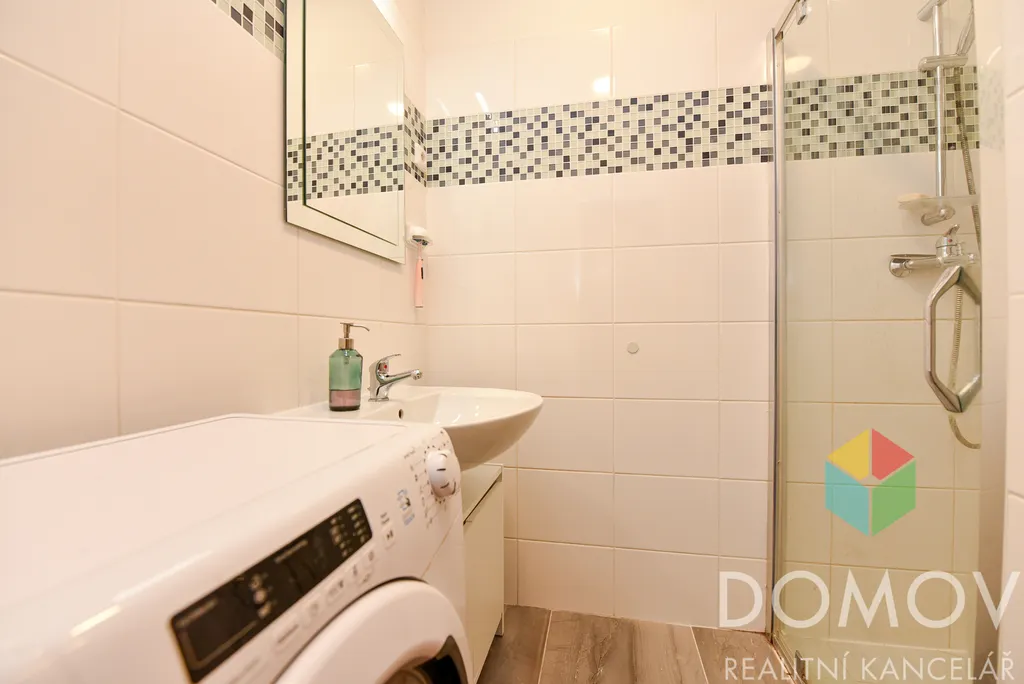 Byt se nachází ve 2.NP z celkových čtyř. Je vybaven moderní kuchyní, okna obou místností směřují do ulice s mírným provozem. Koupelna byla rekonstruována před 7 lety, je v ní sprchový kout a umyvadlo, toaleta je zvlášť. V předsíni se nachází praktický úložný prostor pod stropem.