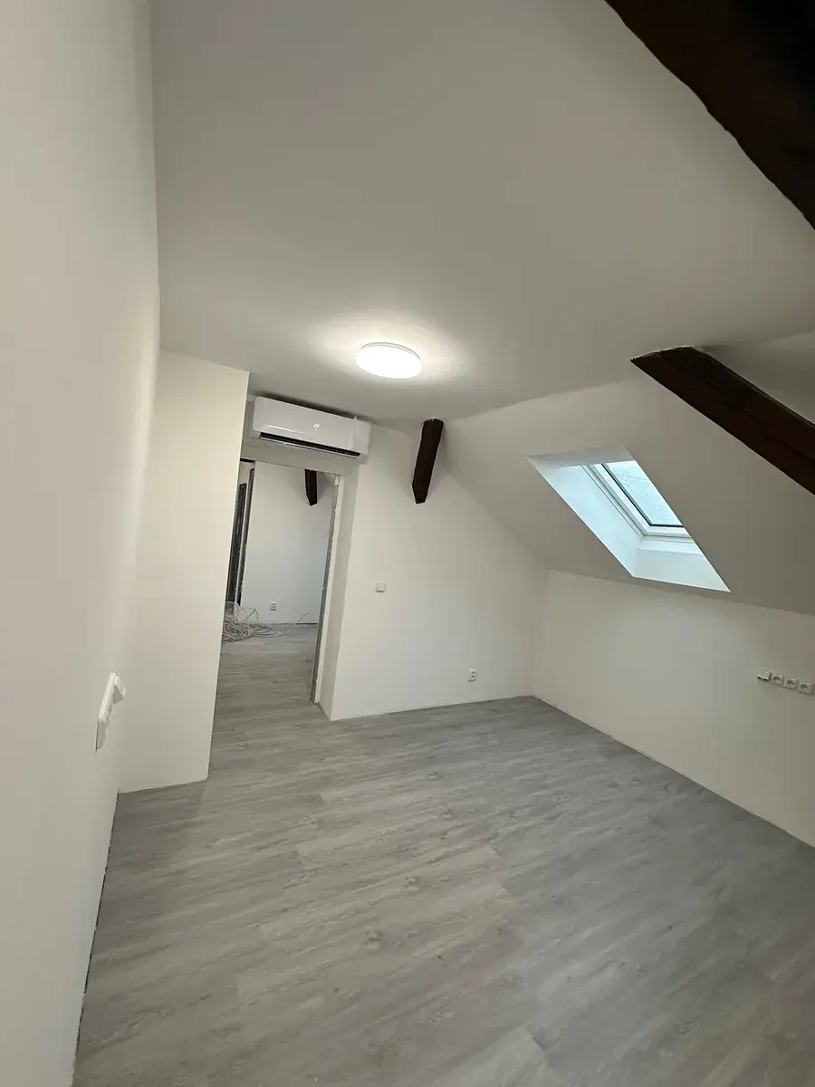 V bytě je příprava na kuchyňskou linku, v koupelně jsou přípojky na pračku a sušičku. V koupelně je instalován topný žebřík.