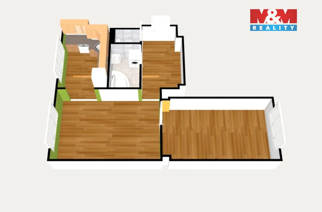 Dispozice 2+1 nabízí pohodlné bydlení s prostorným obývacím pokojem, ložnicí a kuchyní s místem pro jídelní stůl. Dům je dobře přístupný, bez nutnosti dlouhých schodišť, parkování je možné přímo u domu.