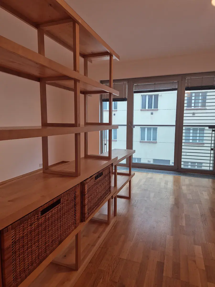 V pokoji je šatní skříň a dřevěná obývací stěna - lze odvézt.