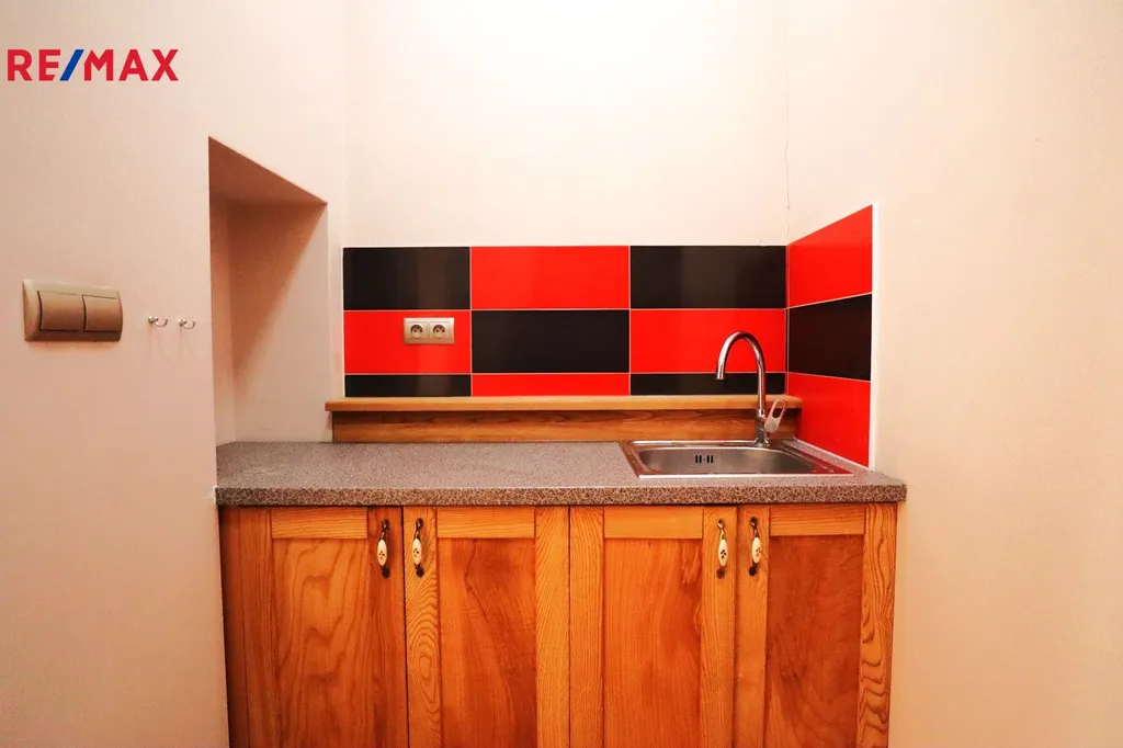 Nebytový prostor tvoří jedna místnost (prodejna) se vchodem přímo z ulice, kuchyňský kout, WC s umyvadlem.