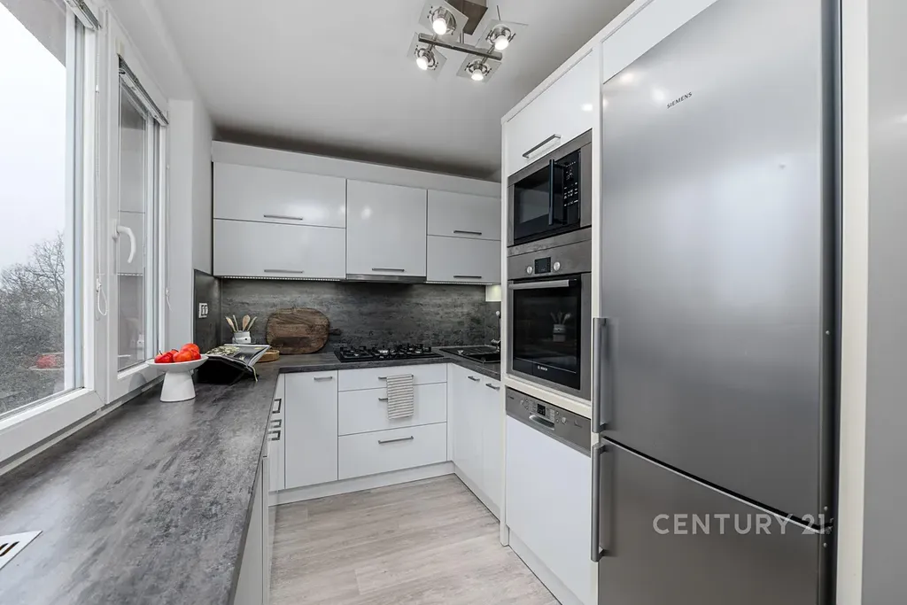 Byt je prostorný, disponuje celkem třemi pokoji, což umožňuje komfortní bydlení pro rodinu nebo jako investice k pronajímání. Místnosti jsou veliké (obývací pokoj ložnice s výstupem na balkón, velký prostorný pokoj a kuchyně, která je vybavena (troubou, plynovým sporákem, myčkou nádobí a kombinovanou lednicí s mrazákem.