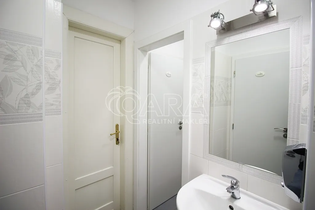 Komerční prostory, 143 m2, 5 kanceláří, prostorná chodba, kuchyňka, 2x wc, větší úložné prostory. Ve 3. patře cihlového domu v centru Prahy s okny do vnitrobloku, po rekonstrukci, s výtahem, elektronickým vrátným a vstupem na chip. Internet, telefonní linky, centrální vytápění, na podlahách dlažba a koberce. Majitelé upřednostňují dlouhodobý pronájem. Komfortní a prostorné kanceláře s možností vstupu pasážemi z Václavského náměstí. Doporučujeme.