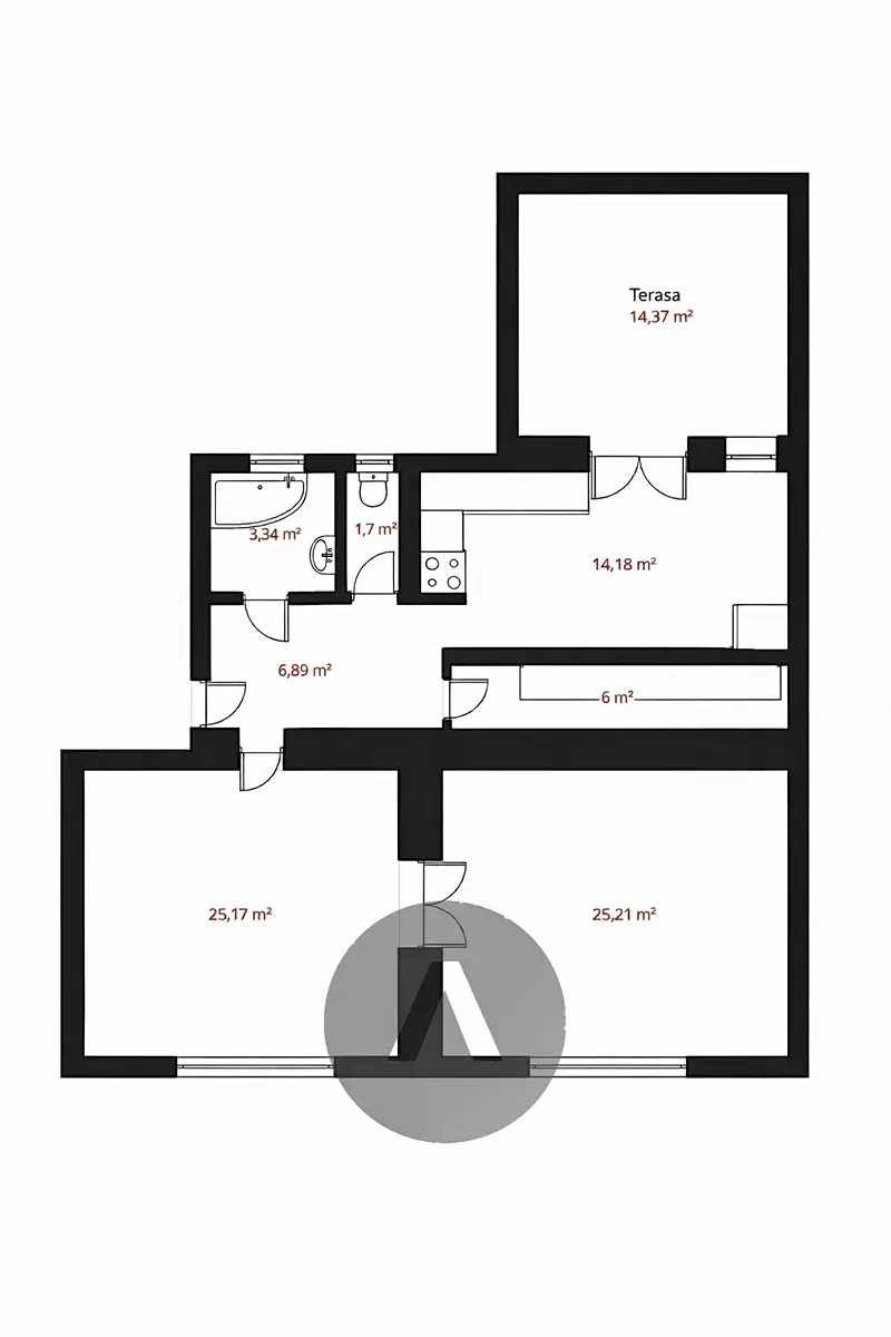 K pronájmu nabízíme prostorný byt splňující dispozici 3+kk, který je v praxi využíván spíše jako 2+1. Všechny místnosti jsou však dostatečně velké nejen pro pohodlné bydlení, ale také pro zřízení pracovního místa či dalšího zázemí. Dispozice bytu tak nabízí velkou míru flexibility a možnost přizpůsobit si bydlení vlastním potřebám.