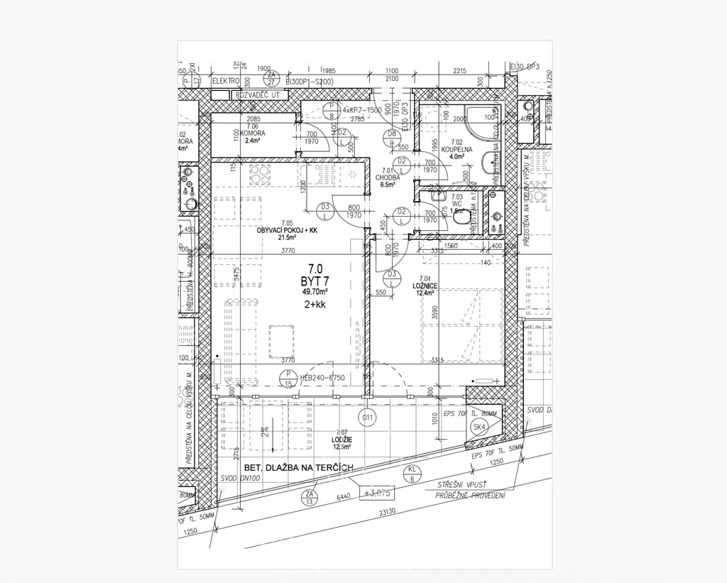 Pronájem bytu 2+kk+lodžie, garážové místo a sklep. Byt se nachází ve 2. podlaží v novostavbě cihlového domu v Plzni - Újezdě, má výměru 49 m2 a prostornou lodžii 12,5 m2, která je přístupná z obou obytných místností.