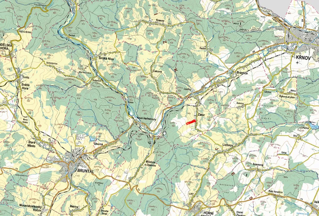 V katastrálním území Zátor, okres Bruntál, nabízíme k prodeji soubor pozemků zapsaných na listu vlastnictví č. 241. Celková výměra těchto pozemků je 60 544 m², předmětem prodeje je z toho 20 181 m².