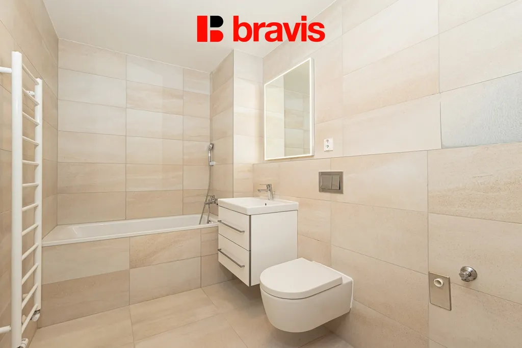 Byt o výměře 54,8 m2 se nachází v 6. nadzemním podlaží novostavby s výtahem. Součástí pronájmu je sklepní kóje.