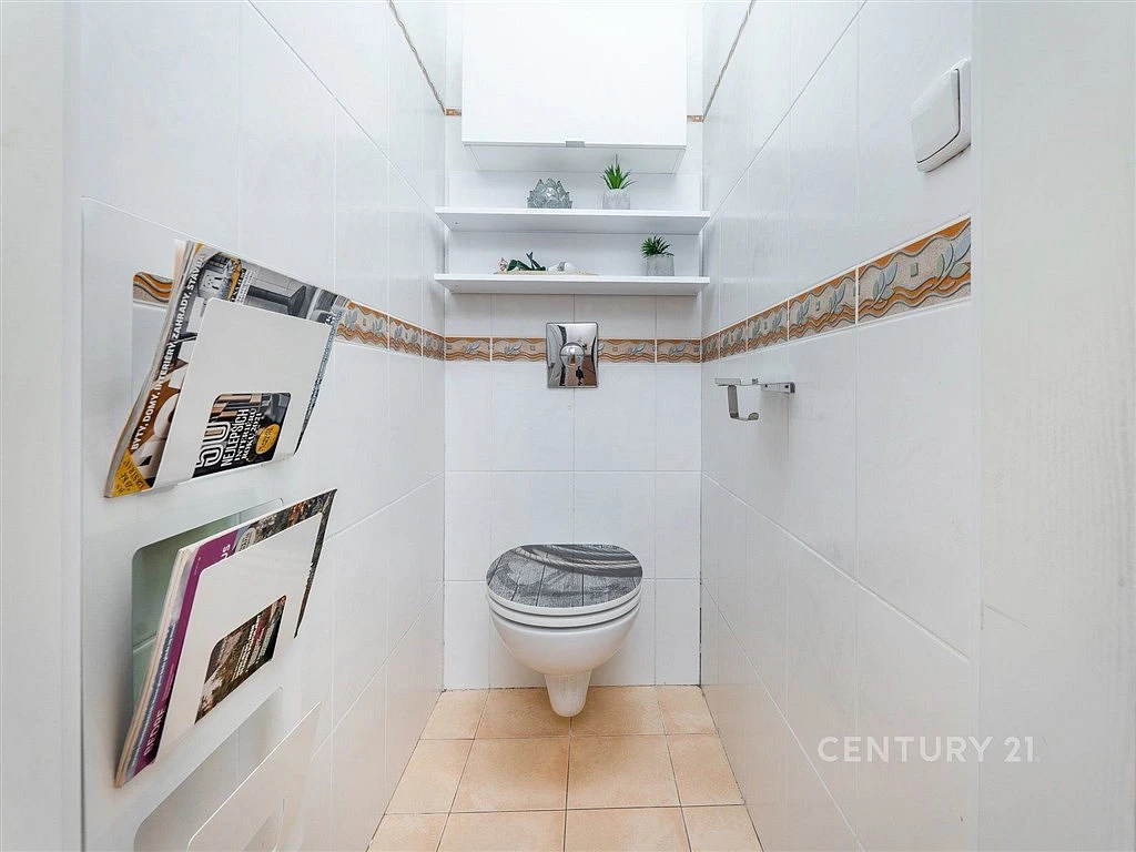 Obývací pokoj s kuchyňským koutem nabízí 34 m² rozšířených o navazující lodžii se zahradním nábytkem a plně otvíratelným dvoukřídlým vstupem. V absolutním soukromí si tu vychutnáte posezení s výhledem do větví listnáčů i jehličnanů a modrého nebe nad nimi, schovaní před deštěm i pohledy sousedů či kolemjdoucích. Jednosměrná ulice s omezenou rychlostí neruší vůbec.