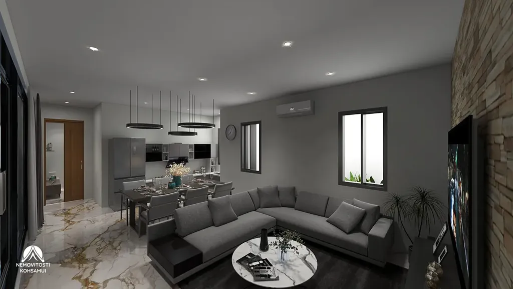 Dům s bazénem se nachází v té nejzelenější části ostrova Taling Ngam a je pouhé 3 minuty od pláže, avšak v okolí se nachází řada služeb a obchodů, včetně restaurace, obchodu Seven Eleven a velkého trhu.