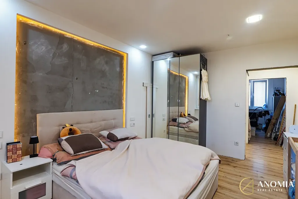 Velkou výhodou je, že zbývá dokončit už jen koupelnu, což novým majitelům dává skvělou příležitost vytvořit si ji přesně podle svého vkusu a potřeb, a to s minimálními náklady oproti kompletní rekonstrukci celého bytu. Stejně tak lze dle vlastních preferencí vybrat zárubně a dveře do dvou pokojů a koupelny, takže finální podoba bytu může být plně ve vašem stylu a byt může být hotov do páer týdnů od nastěhování. Z ložnice je navíc přímý vstup na lodžii, ideální na ranní kávu nebo chvíli klidu.