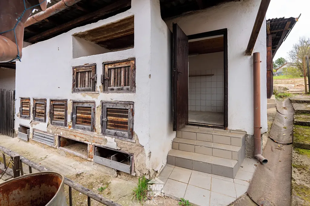Dům je určen k celkové rekonstrukci, což novému majiteli umožňuje přizpůsobit dispozici i standard bydlení vlastním potřebám. Dispozičně je řešen jako 4+1 a disponuje třemi sklepními místnostmi v suterénu. Součástí objektu je také hospodářská část s chlévy, dílnou a sklady, která nabízí široké možnosti využití – například jako zázemí pro řemeslo, podnikání či skladovací prostory. Parkování je možné přímo na pozemku v zastřešeném průjezdu, což oceníte zejména v zimních měsících. Celková plocha pozemku činí 944 m², zahrnující dvůr a menší zahradu se záhony.