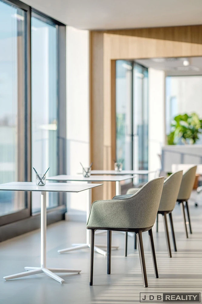 - Společné prostory, business lounge, relaxační zóny a plně vybavené kuchyňky