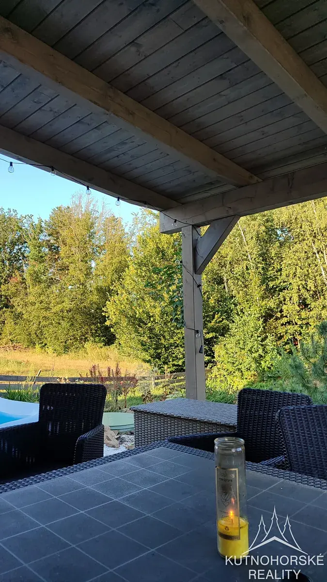 Na zahradě je venkovní posezení (terasa se zastřešenou pergolou) okrasná i užitková zahrada, kolny.