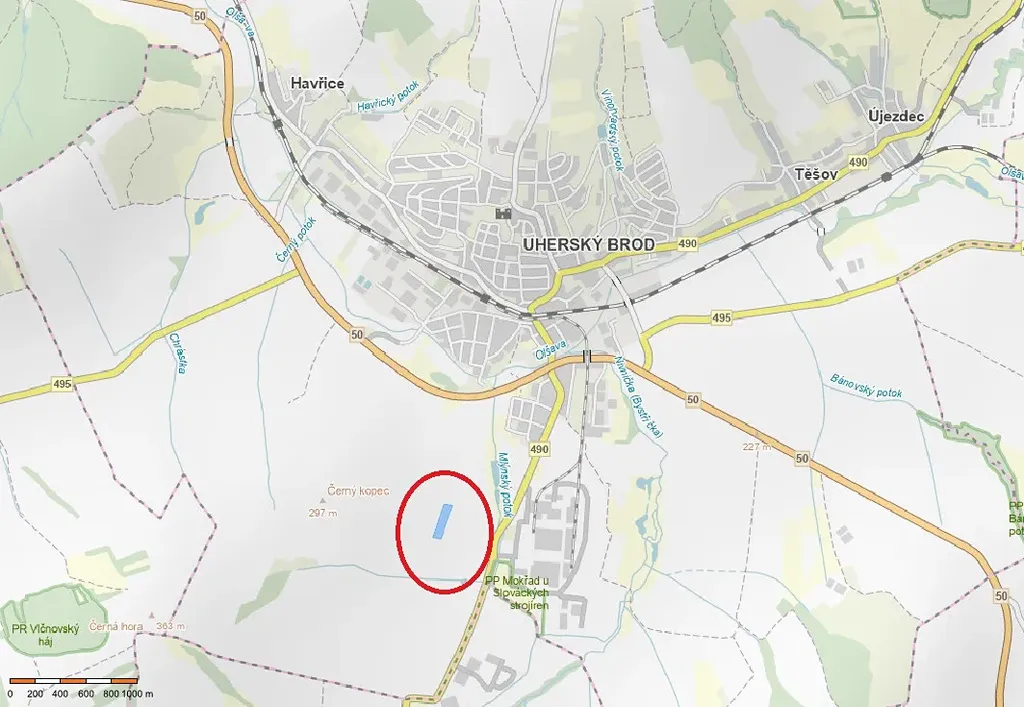 Nabízíme k prodeji strategický pozemek o celkové výměře 18 754 m² v katastrálním území Uherský Brod (parcelní číslo 10576).