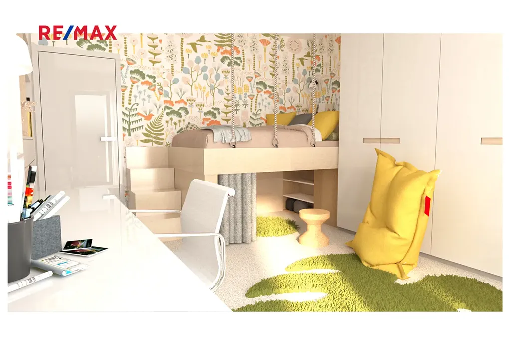 Nabízený byt se nachází ve druhém nadzemním podlaží. Disponuje dvěma ložnicemi o velikostech 17,7 m² a 21,7 m², obě s okny orientovanými do klidné ulice. Obývací pokoj o ploše 20,4 m² tvoří přirozené centrum bytu.