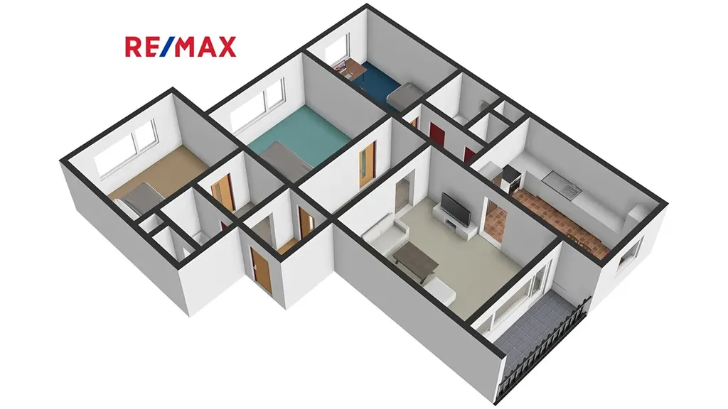 Byt je v osobním vlastnictví, je v udržovaném stavu a jeho velkým benefitem jsou zděná jádra v obou koupelnách. Vstup do bytu zajišťují bezpečnostní a protihlukové dveře včetně zárubně, které přispívají k vyššímu komfortu bydlení. Za dveřmi je dlouhá vstupní chodba s vestavěnými skříněmi, takže úložné prostory jsou vyřešené hned od prvního kroku. V klidové části bytu se nachází ložnice a první sociální zázemí, které je prakticky řešené s prostorem pro pračku a sušičku. Dále jsou zde další dva samostatné pokoje, ideální jako dětské pokoje, pracovna nebo pokoj pro hosty.
