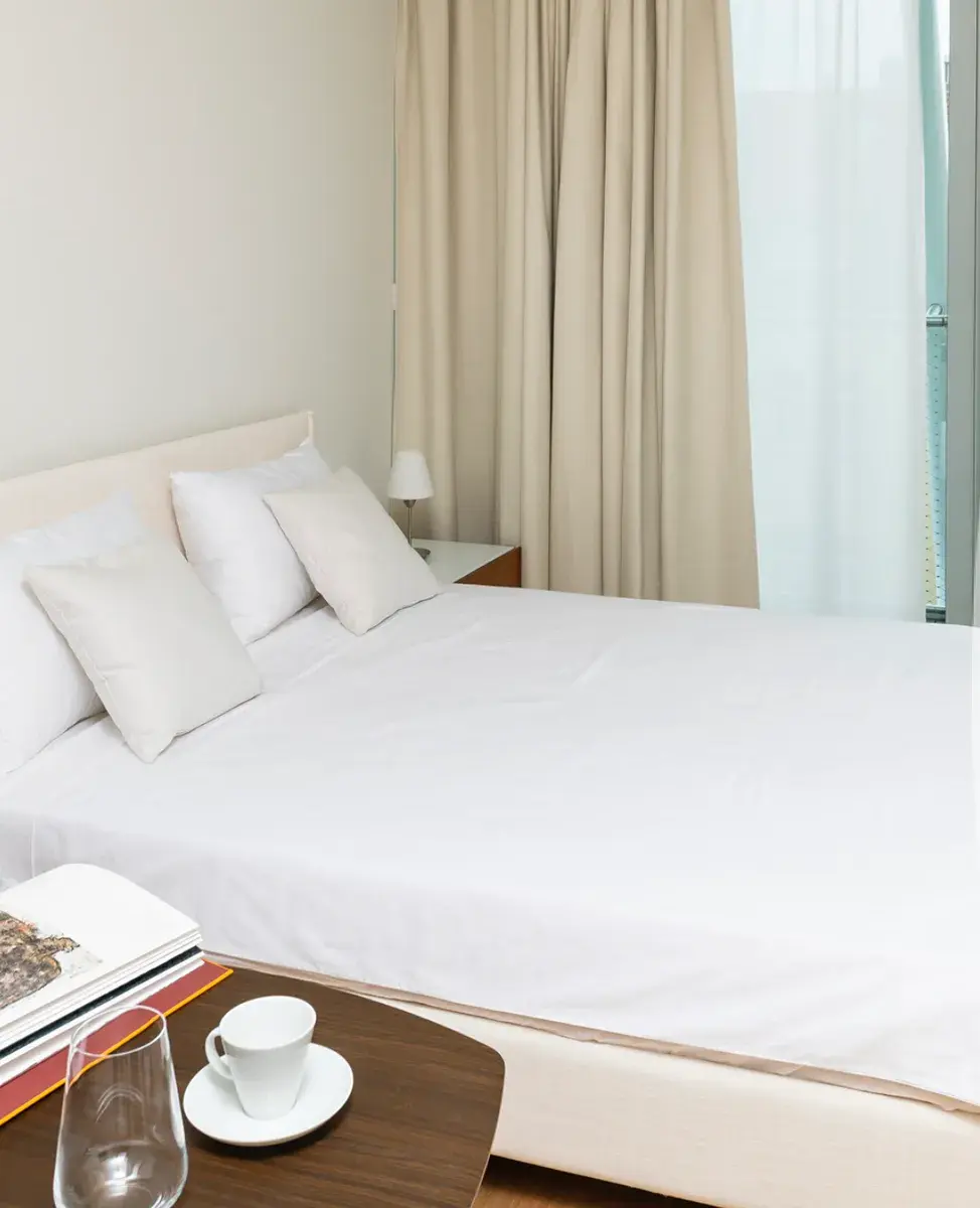 K pohodlí přispívají také služby concierge, možnost pravidelných úklidů a krásné wellness centrum s bazénem a saunou. V bytě se nachází zdravotní matrace, zvukově izolační okna a špičkové koupelny.