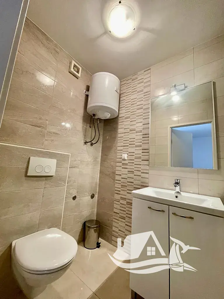 První patro o rozloze 110 m² je koncipováno jako tři studiové apartmány a jeden apartmán o přibližné ploše 35 m². Všechny jednotky jsou moderně zařízené, plně vybavené klimatizací a televizí a připravené k pokračování v pronájmu. Vyvýšené podkroví o ploše cca 100 m² je ve stavu Roh-Bau a nabízí další potenciál rozšíření obytného prostoru. Z terasy je panoramatický výhled na moře a ostrovy.