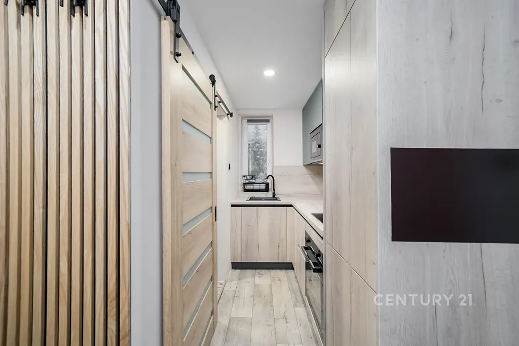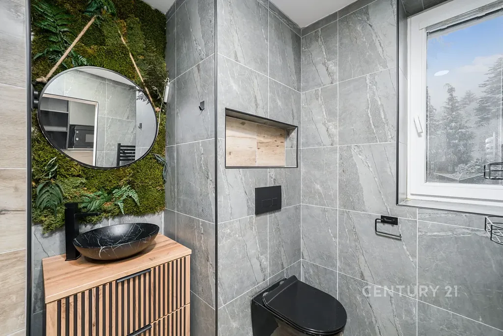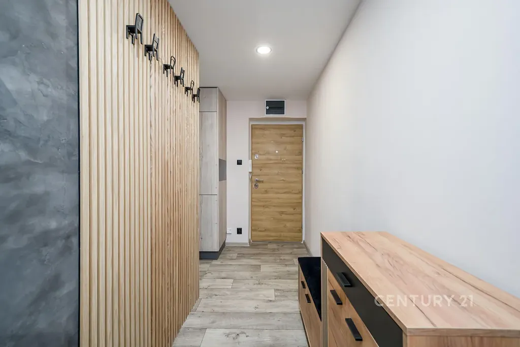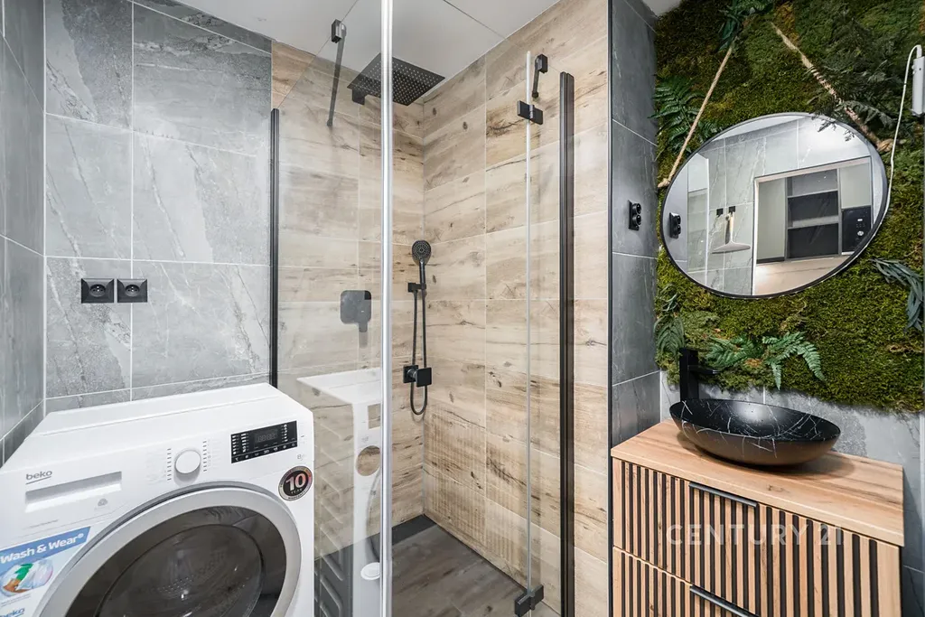 Byt má výborně řešený interiér, kvalitní materiály, moderní kuchyňskou linku se spotřebiči a stylovou koupelnu s přírodním prvkem a sprchovým koutem.