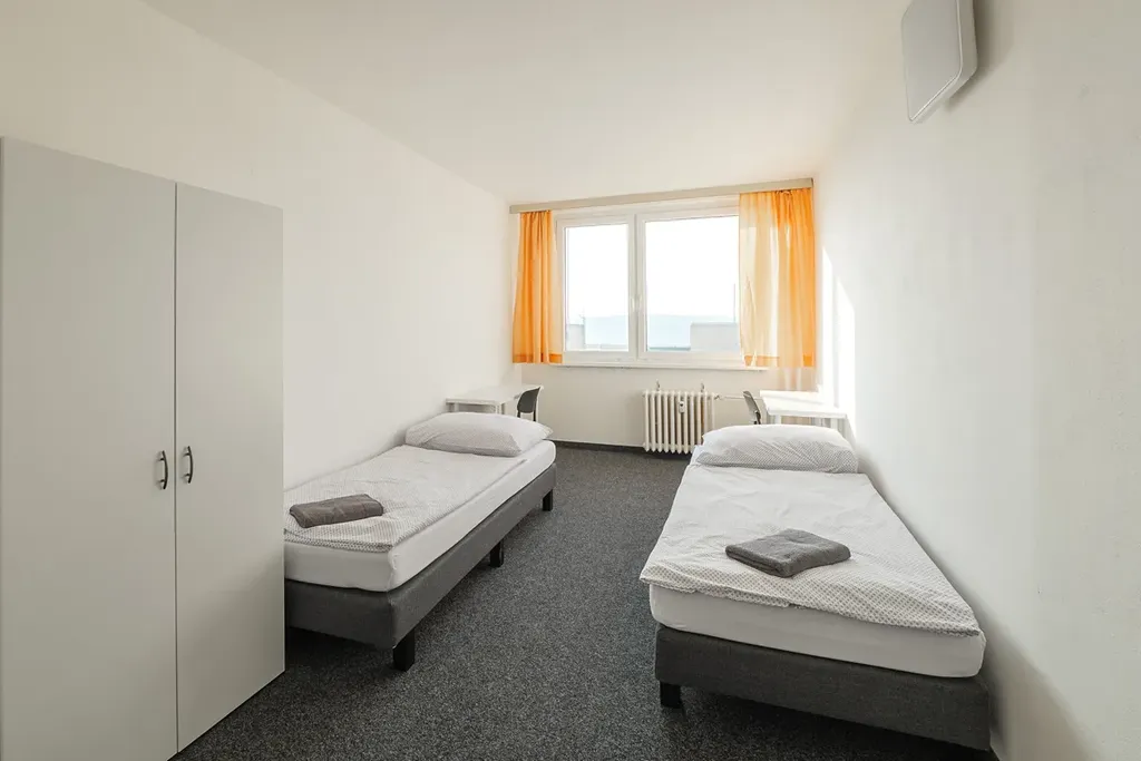 (Cena za lůžko na třípokojovém pokoji. Dvoulůžkový pokoj 10 500 Kč/osoba/měsíc)