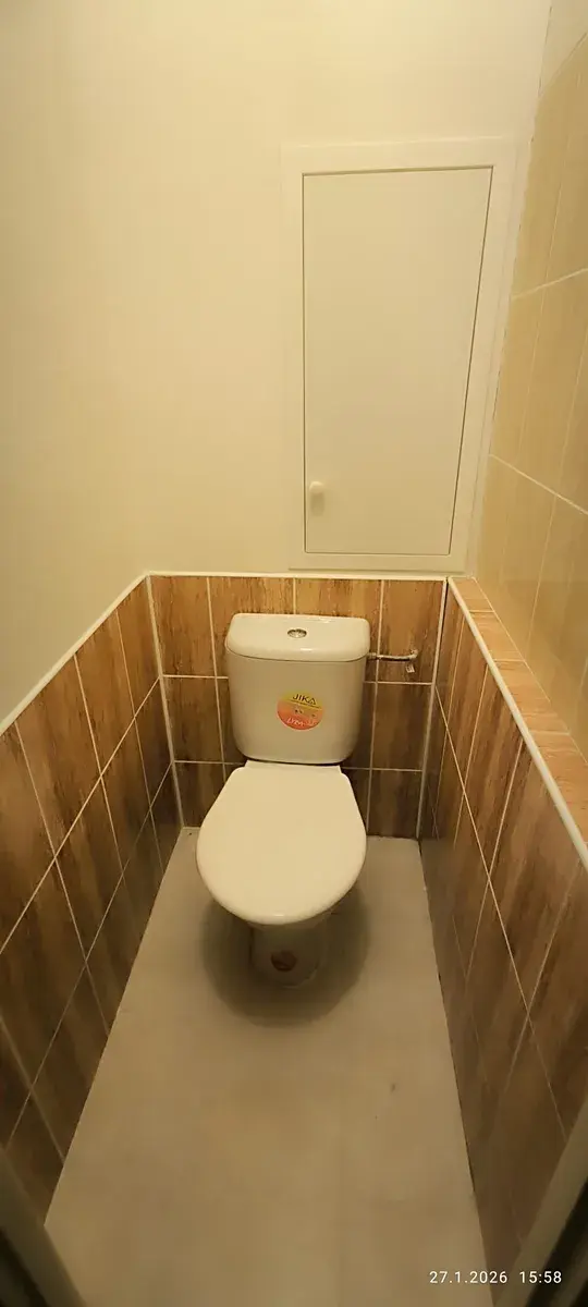 Toaleta zvlášť, rovněž s obklady a dlažbou.