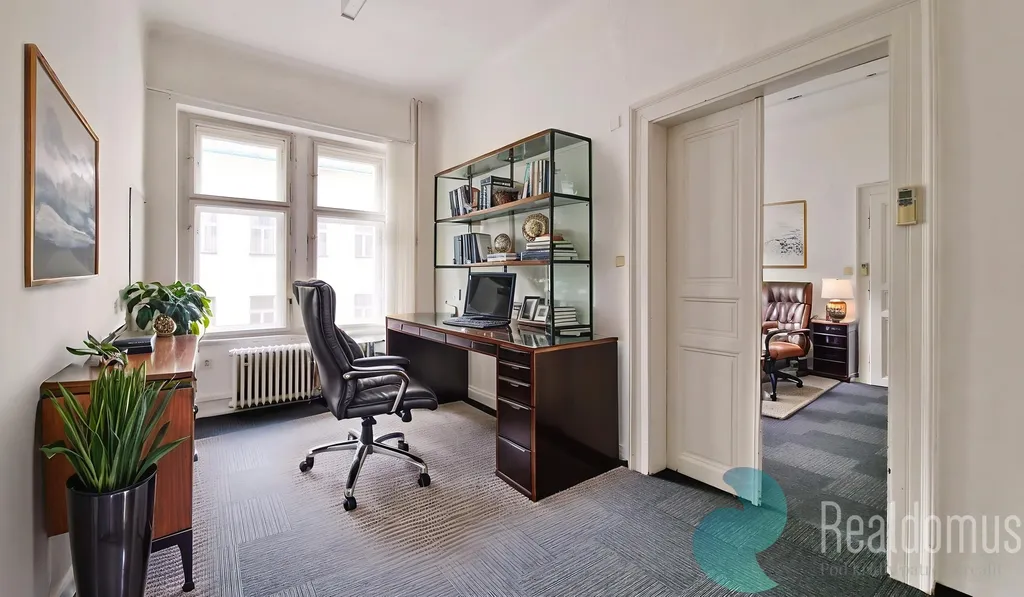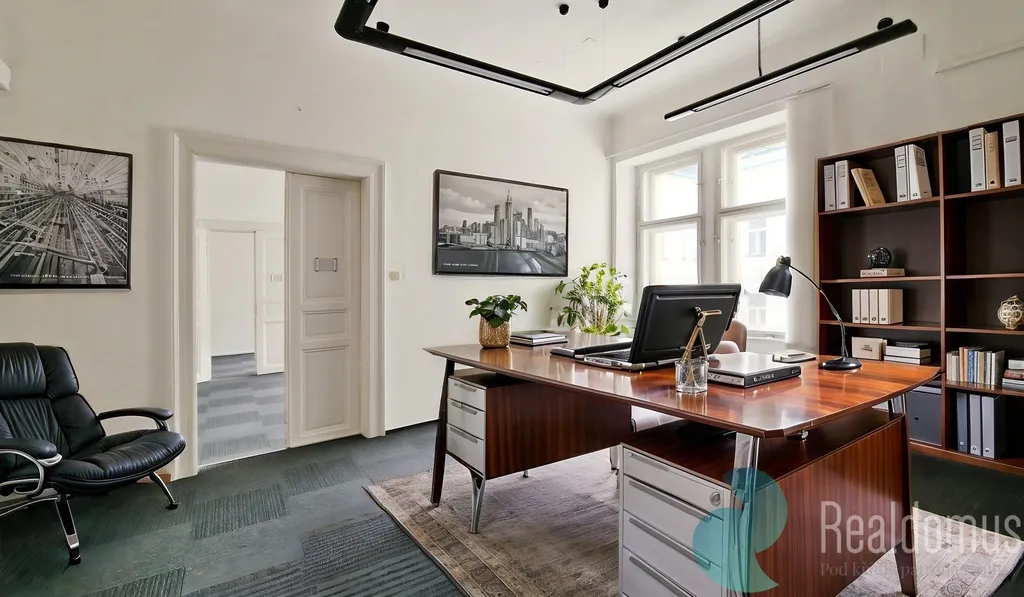 Prostor je situován v udržovaném domě s charakterem a nabízí tři samostatné místnosti, které poskytují dostatek flexibility pro uspořádání pracovního prostředí. Dispozice umožňuje oddělení hlavní kanceláře od zasedací místnosti, pracovny a klientské části, čímž vytváří příjemné a funkční zázemí pro každodenní provoz i jednání s klienty. V domě se také nachází podatelna. Další přidanou hodnotou je možnost zaplacení levného úklidu.