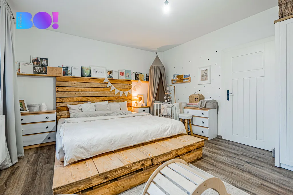Velkým benefitem je samostatná prostorná garáž o výměře přibližně 90 m², která bez problémů pojme dvě až tři vozidla. Díky své velikosti může sloužit nejen jako parkovací prostor, ale také jako dílna, sklad či technické zázemí pro podnikání nebo hobby aktivity. Rozlehlý pozemek nabízí ideální kombinaci užitkové i relaxační části – dostatek místa pro zahradu, posezení, dětské vyžití, bazén nebo další úpravy dle individuálních potřeb.