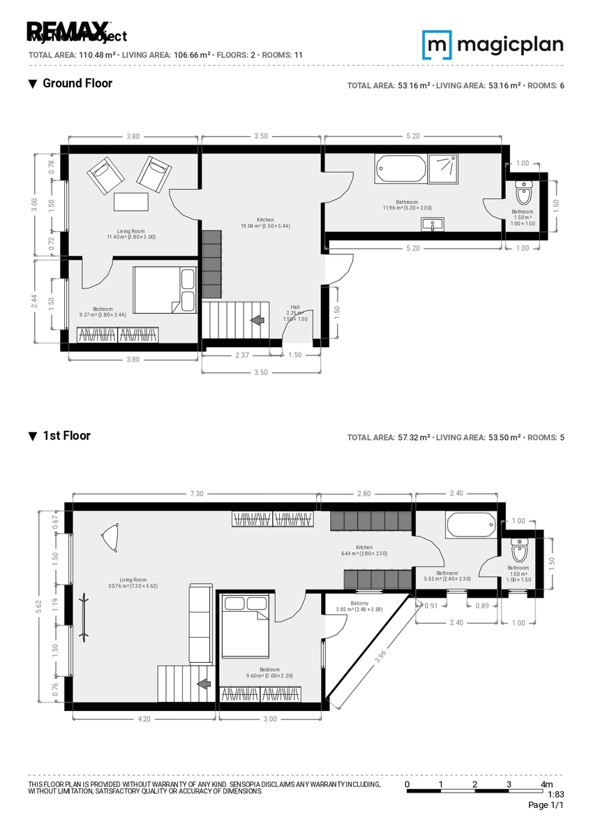 Dispozici domu tvoří dvě podobně řešená patra, kdy v každém najdeme samostatnou jednotku 2+1 s koupelnou a toaletou. Obě mají výhled do ulice, a tedy na jiho-západ. Na pozemku je menší dvorek přístupný ze spodního bytu.