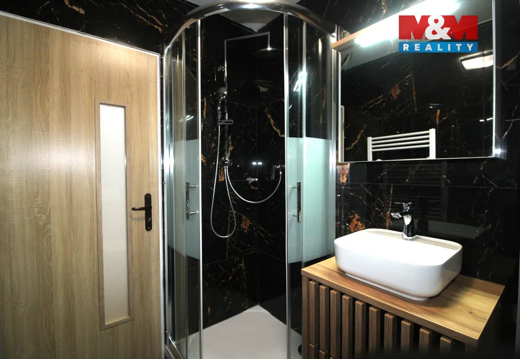 V kuchyni je nová kuchyňská linka se sporákem a digestoří. Koupelna je společná s toaletou. Je vybavena umyvadlem s umyvadlovou skříňkou, sprchovým koutem, elektrickým žebříkem a dostatečným prostorem pro umístění pračky.