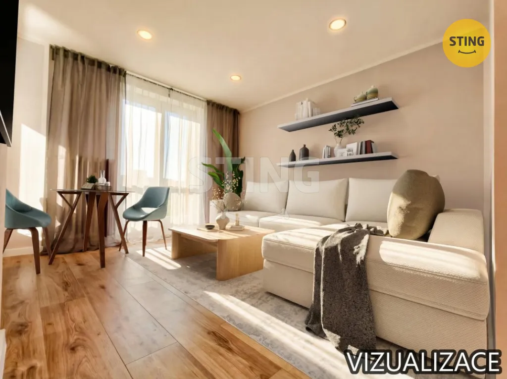 Po rozsáhlé rekonstrukci byt nabízí hezké útulné a klidné bydlení s veškerým komfortem. Spojením kuchyně a obývacího pokoje s balkonovým oknem vzniklo příjemné místo k rodinnému zázemí a domácí pohodě. Další dva samostatné a výměrou prostorné pokoje, z nichž jeden má balkon a v blízké budoucnosti bude zrekonstruován na větší zasklenou lodžii, zajistí soukromí pro každého člena domácnosti. Výhodou je i samostatná šatna kam lze instalovat v případě potřeby sušičku. Koupelna sestává ze sprchového koutu 80 x 110 cm, odkládací niky, skříňky s umyvadlem a místem na pračku. Na limit místa, který původní stav koupelny nabízel, se rekonstrukcí dosáhlo mnohem pohodlnějšího a většího prostoru. WC je samostatné.