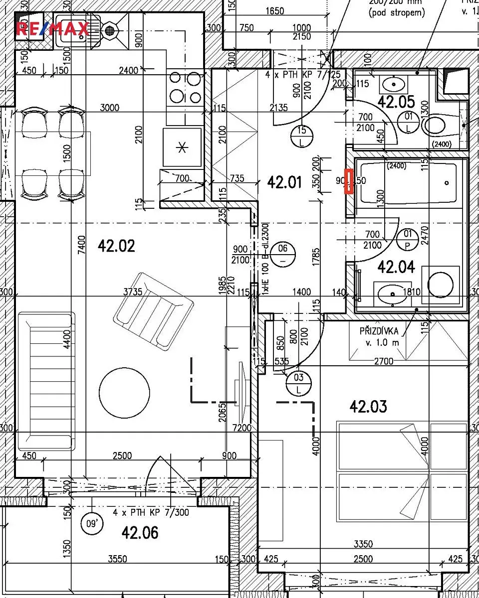 • prostorný obývací pokoj s kuchyňským koutem a vstupem na lodžii (4,76 m²)