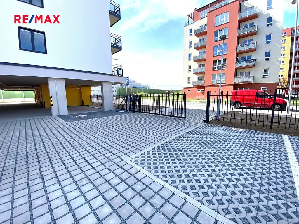 K bytu náleží komora na patře o výměře 2,68 m² a kryté parkovací místo č. 9. Vjezd do objektu je zajištěn elektrickou vjezdovou branou.