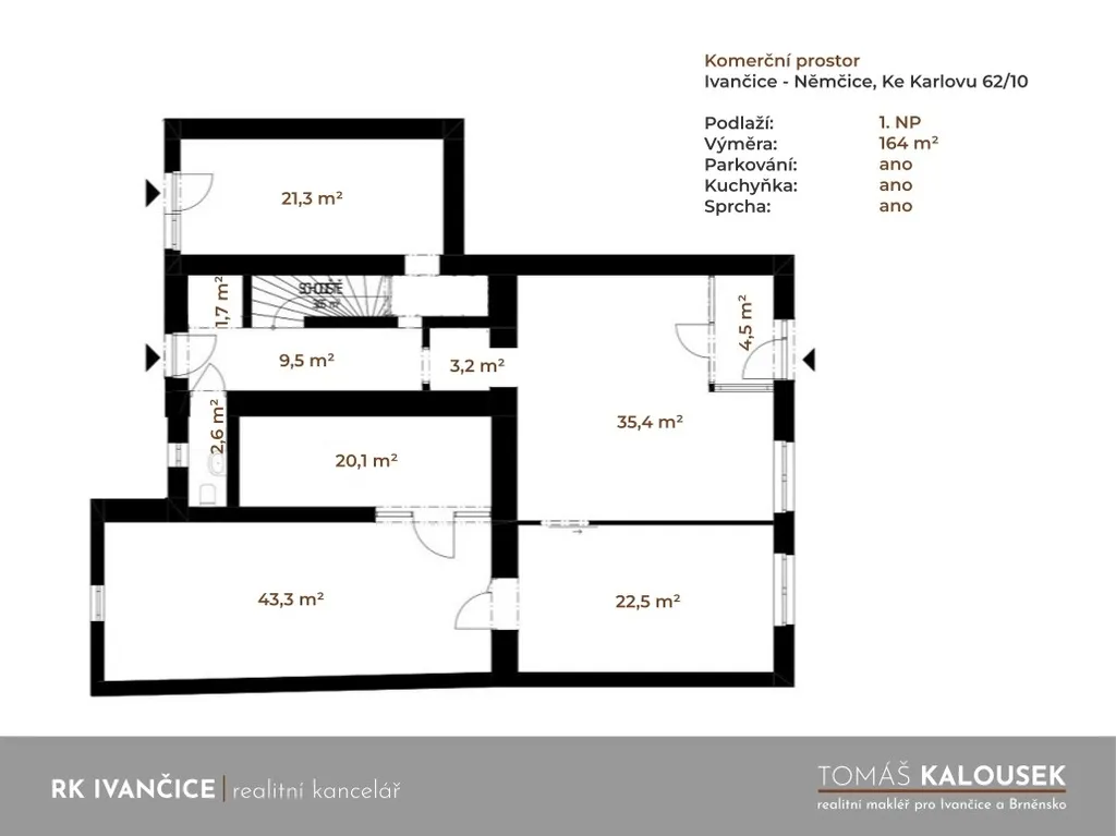 Nabízím pronájem přízemních komerčních prostor v Ivančicích s celkovou výměrou 165 m².
