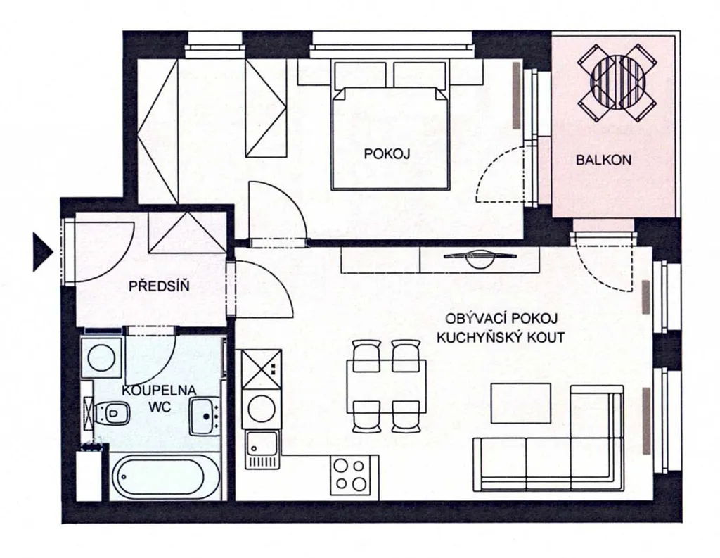 Byt je plně vybaven (viz foto) a disponuje dostatečným množstvím úložných prostor. V koupelně je kvalitní sanita značky Villeroy & Boch a pračka se sušičkou (2 v 1).