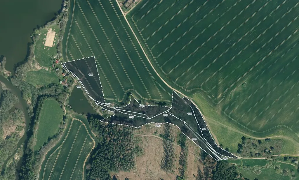 Pozemky jsou zapsány na listu vlastnictví 528 a jedná se o parcely: 653/1, 655/2, 656/2, 789/1, 789/6, 789/7, 794/2, 4121, 4122, 4124, 4126, 4130. Pozemky se rozprostírají podél vodních ploch a lesa.