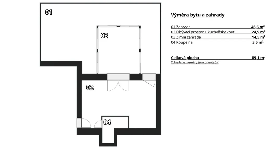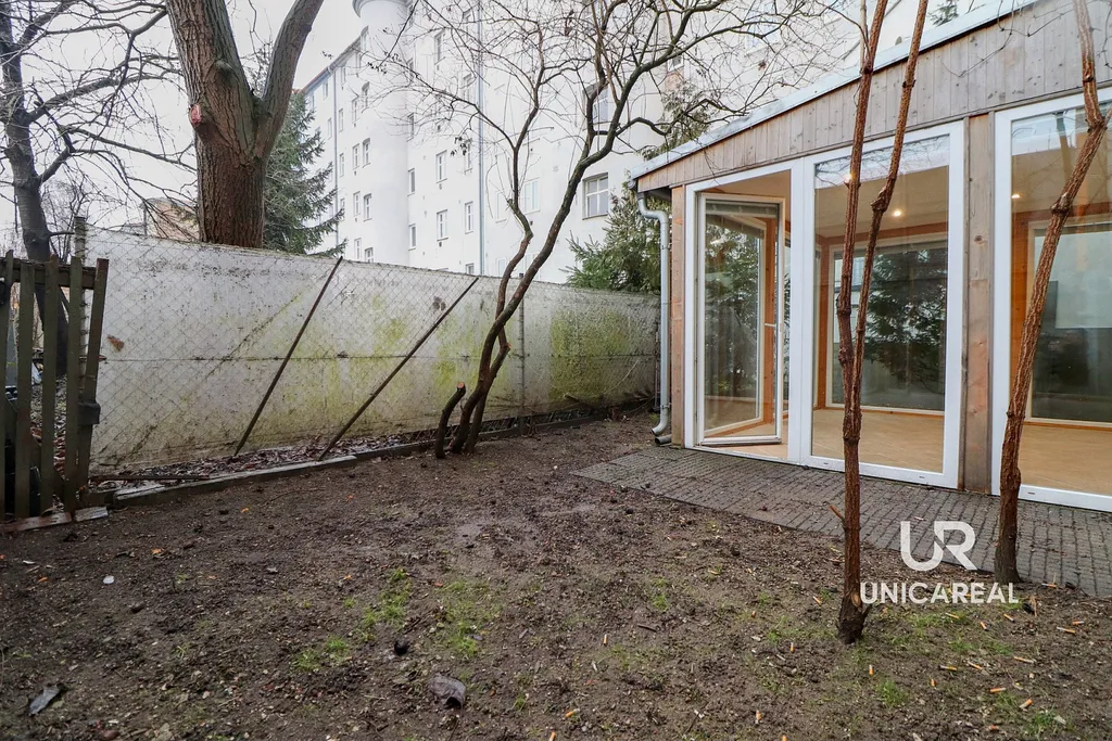Jedná se o dispozičně unikátně řešený byt, kde ložnice je panoramatická se čtyřmi prosklenými stěnami. Z ložnice se pak vchází přímým vstupem na vlastní zahradu, která je příjemným uživatelským bonusem pro nerušený relax. Ačkoliv v těsné blízkost centra, je byt velmi klidný, protože je orientovaný do vnitrobloku. Pro lepší představu o dispozici je součástí prezentace půdorys a vizualizace