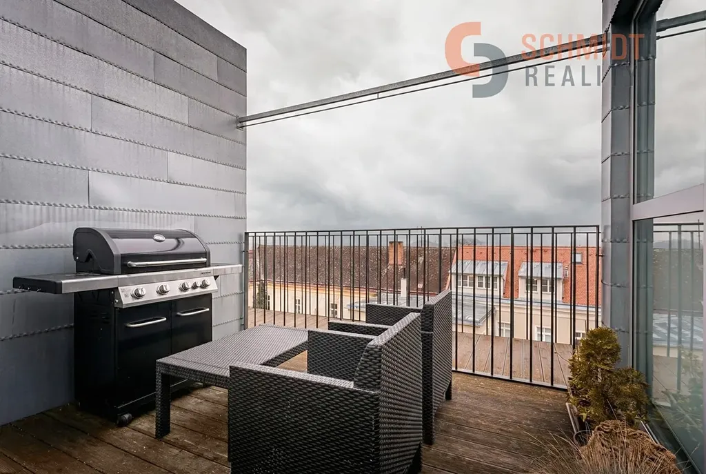 Právě terasa dává tomuto bytu jedinečnou atmosféru. Je dostatečně prostorná pro posezení s přáteli, letní grilování i klidné večery se sklenkou vína při západu slunce. V letních měsících se stává přirozeným prodloužením obývacího prostoru a výrazně zvyšuje komfort bydlení.