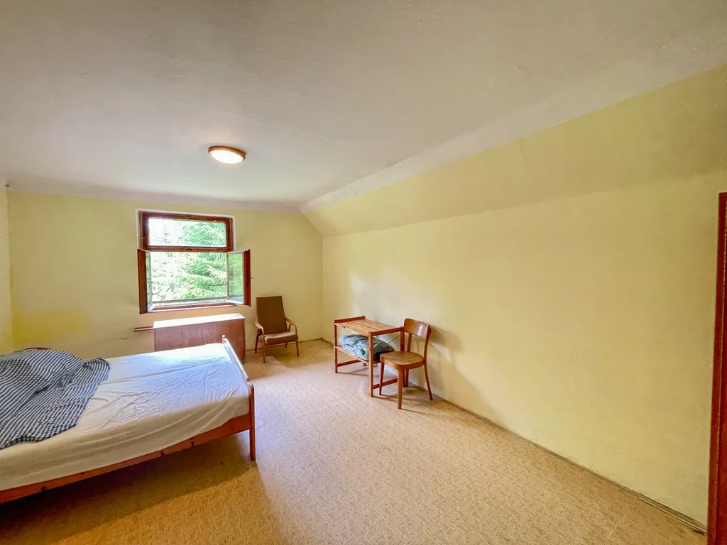 Chalupa je zasazena do malebné šumavské krajiny, kde se dokonale snoubí klid a příroda. Okolí domu tvoří zahrada trojúhelníkového tvaru, která se plynule vine kolem chalupy a dává jí jedinečný charakter. Tato zahrada, obklopená navazujícími lesy, zajišťuje naprosté soukromí a hluboký kontakt s divokou přírodou. Vzrostlé stromy podtrhují její polohu na samotě a vytvářejí idylické venkovské prostředí ideální pro relaxaci a outdoorové aktivity. Na zahradě se navíc nachází parkoviště a zastřešený skladovací prostor pro zahradní nářadí, kola a podobné vybavení.